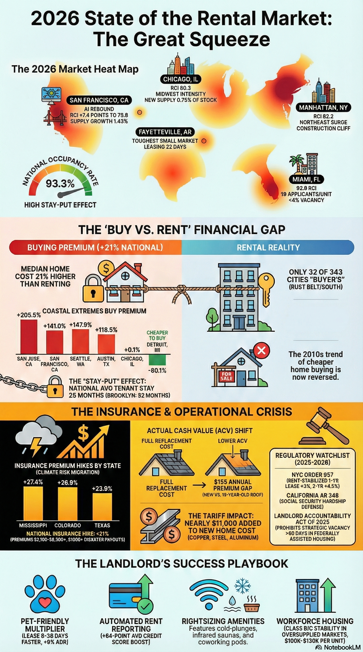 Proactively Manage Risk. The escalating insurance crisis and the evolving regulatory landscape are now core components of asset management. Proactively budget for rising insurance costs, invest in climate-resilient property features to mitigate future premium hikes, and stay rigorously informed on local landlord-tenant laws. Protecting cash flow and ensuring compliance are essential to navigating the headwinds of 2026.