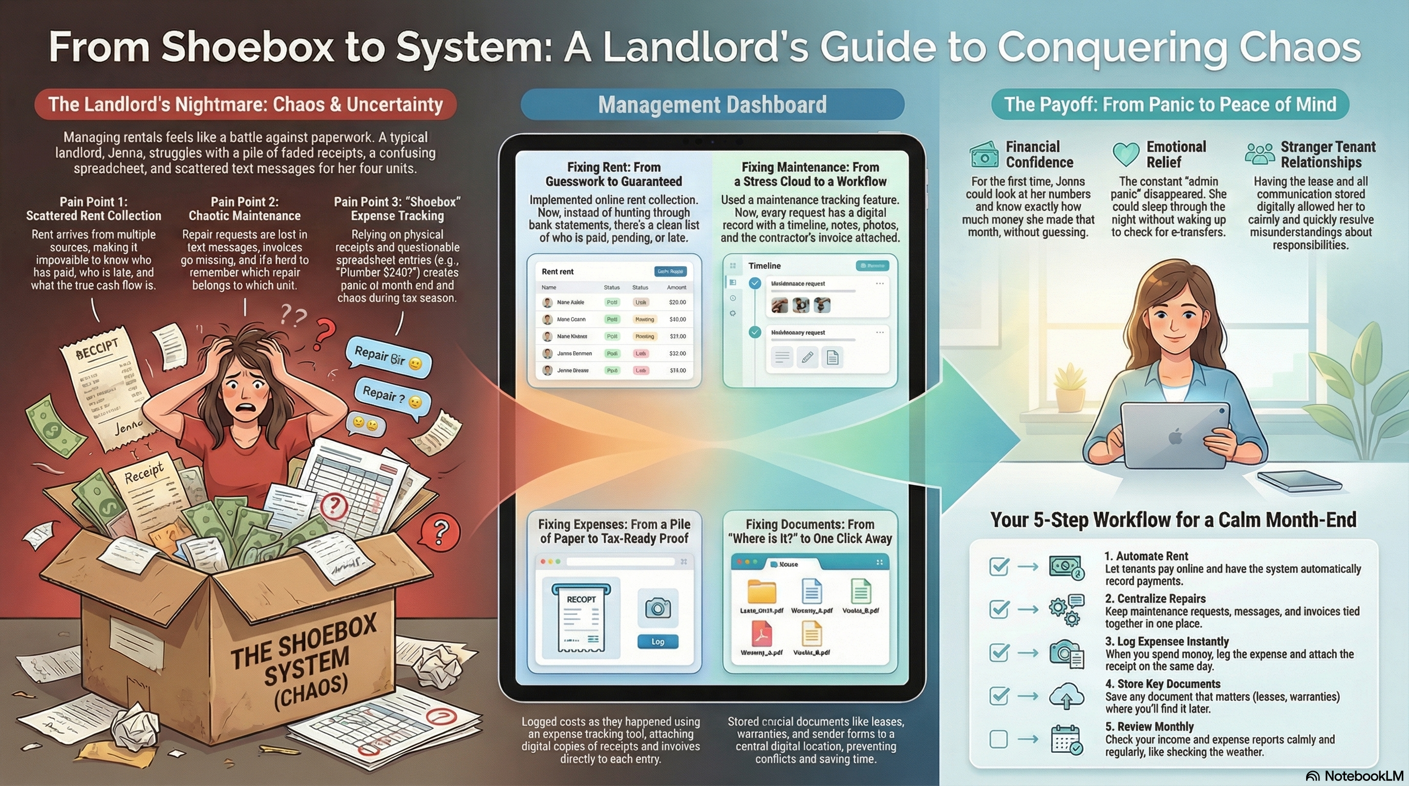 She managed four units across Canada and the U.S. Not a huge portfolio. Just enough to make “I’ll do it later” turn into “Why is this happening to me?”